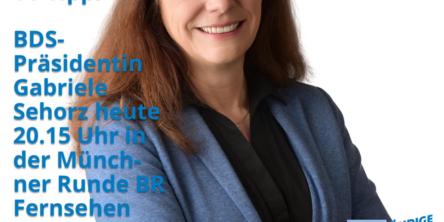 März32021Allgemein TV Tipp: BDS-Präsidentin Gabriele Sehorz heute 20.15 Uhr in der Münchner Runde BR Fernsehen Thema: „Raus aus dem Lockdown“ Mehr finden Sie hier: https://www.br.de/…/programmkalender/sendung-3025470.htm 3. März 2021KommentarnavigationZurückVorheriger Beitrag:BDS-Geschäftsklimaindex fällt auf Allzeittief! Erstmals negatives VorzeichenNächstesNächster Beitrag:FDP-Fraktion und BDS Bayern: Neue Corona-Verordnungen sind zu komplex und realitätsfremd